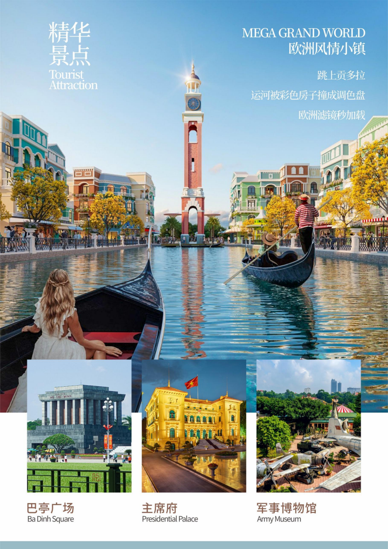 酒店早餐后,乘车前往越南“威尼斯”【欧洲小镇Megagrandworld】(停留参观约40分钟),是河内的新兴网红拍照打卡点,一片五彩斑斓的建筑,就像走进了一幅美丽的油画中!每座房子都像艺术品一样。彩色房子中又包裹着一条小河,小河上还有大帆船,小游船,给这个小镇又增添了些生动的色彩,街道两旁还有不少精致的小商店和咖啡馆,可以找一家可爱的咖啡店,品尝一杯越南咖啡,有种身处电影里的高级感!