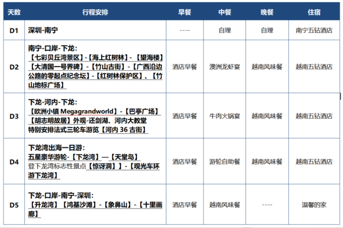(6)越南时间比中国北京时间慢一小时;另行程里的时间仅供参考具体以当时游览时间为准;