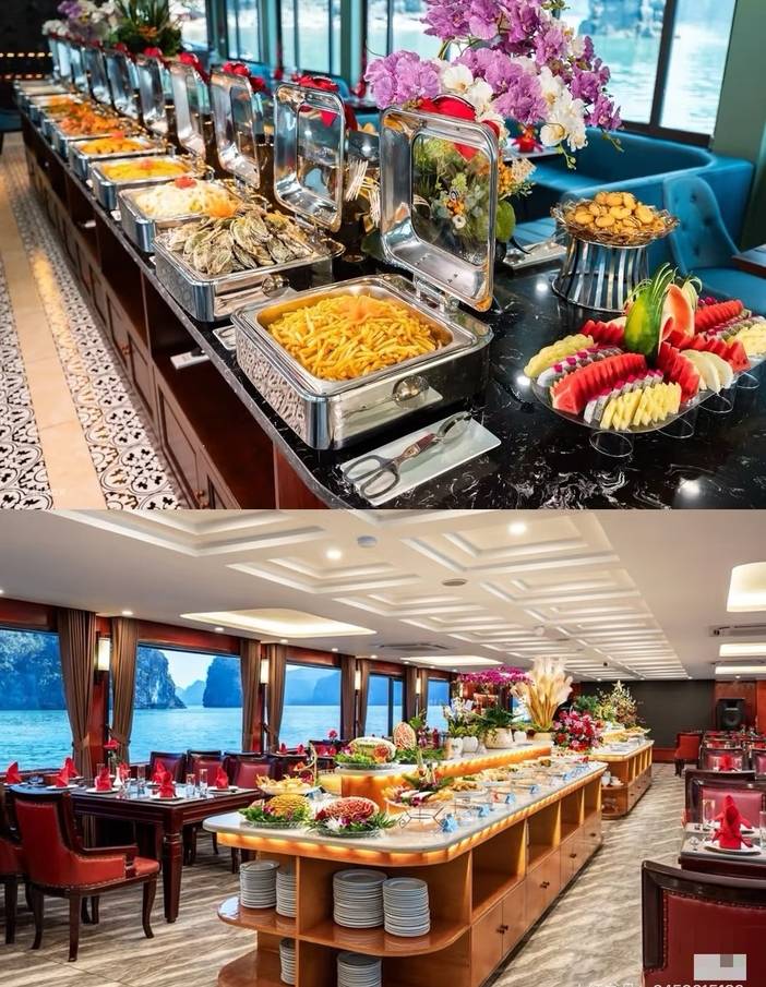 享用【游轮豪华自助餐】(100多种来自越南、日韩、欧洲的特色美食,来杯鸡尾酒或咖啡,更有一番风味)坐在游轮上一边欣赏着“海上桂林”美景,一边大快朵颐,一种美妙感觉在您的身悄悄蔓延。