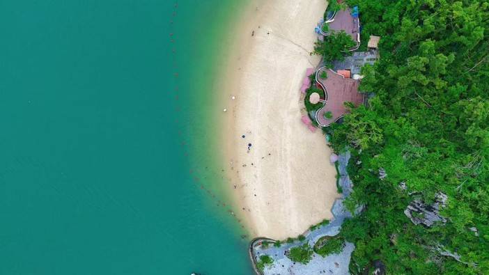 换乘海上快艇前往越南最浪漫、最漂亮的岛屿—【天堂岛】,岛上活动约1小时。细白的沙滩上可以玩各种沙滩游戏(游戏道具自备),在指定区域还可以游泳,登上岛屿的山顶俯视下龙湾海上桂林全景,拍摄您心意的美照。天堂岛登山台阶约400多级,因登山台阶稍微有点陡峭,旅行社建议年龄达70岁以上游客或腿脚不灵便游客等根据自身身体状况量力而行。