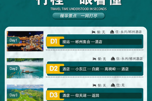 住宿:入住2晚网评精品酒店(郴州市或县城),参考(山水/高职院/莫林/府上等)