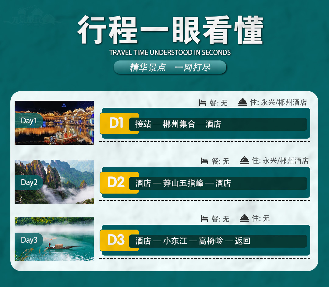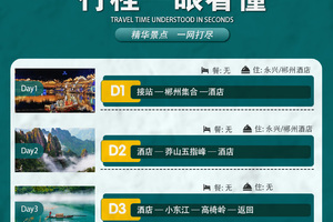 此次旅游总共跨越3天时间,以上行程领队会根据实际情况作相应调整,但总行程不变。
