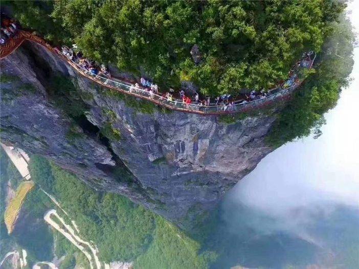 3、999级台阶顶至天门洞,可步行挑战。也可乘坐扶梯,共计12段(天门山扶梯64元/人未含),自由选择乘坐。上栈道的游客均要求戴上鞋套(鞋套费用5元/人未含),以保持玻璃桥的透明和干净