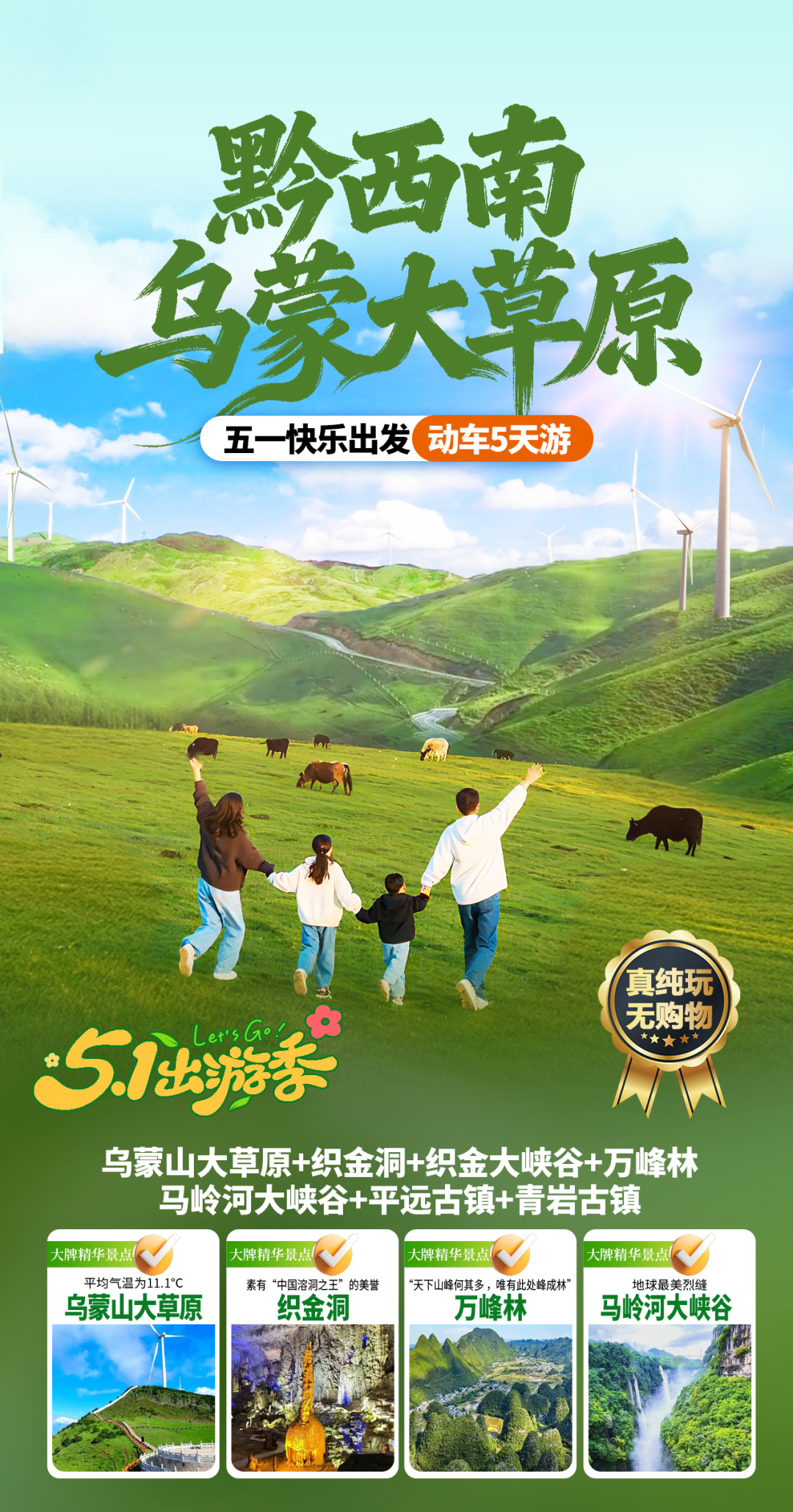 2. 不含景区必消小交通:景交车自理总计190元/人(织金洞30观光车,织金大峡谷游船+保险20元/人,乌蒙大草原25+万峰林电瓶车50+马岭河电梯40+青岩25)