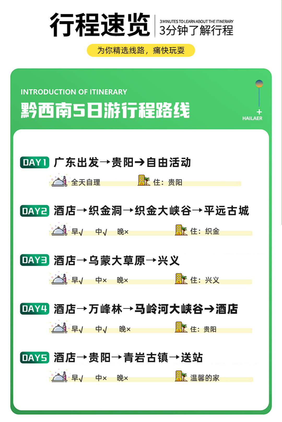 早餐:√ 中餐:√ 晚餐:× 住宿:贵阳
