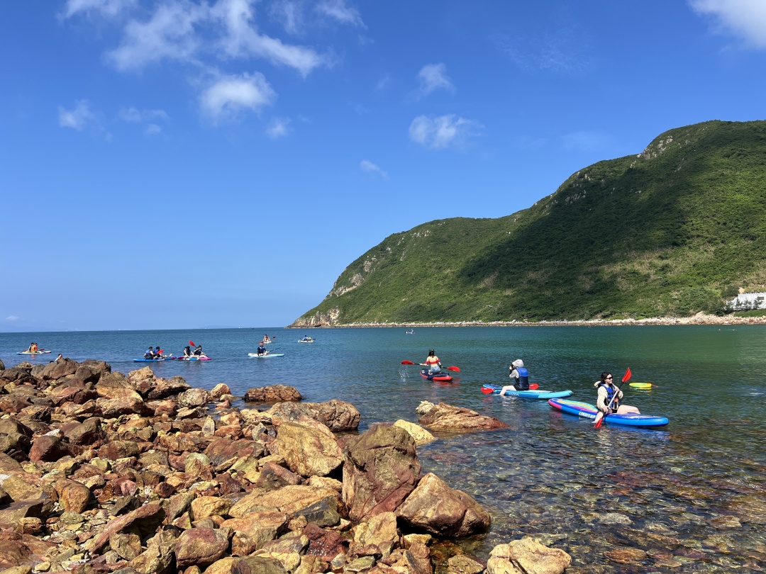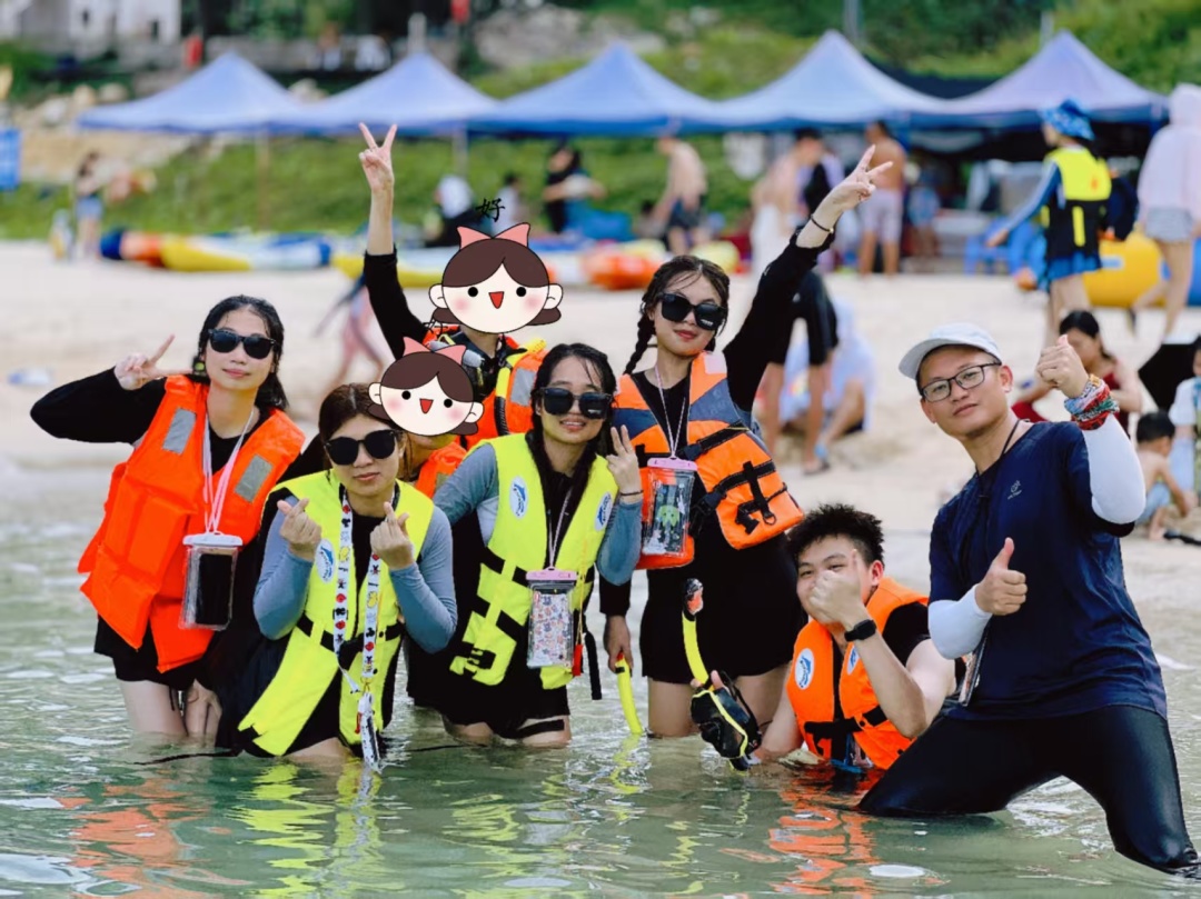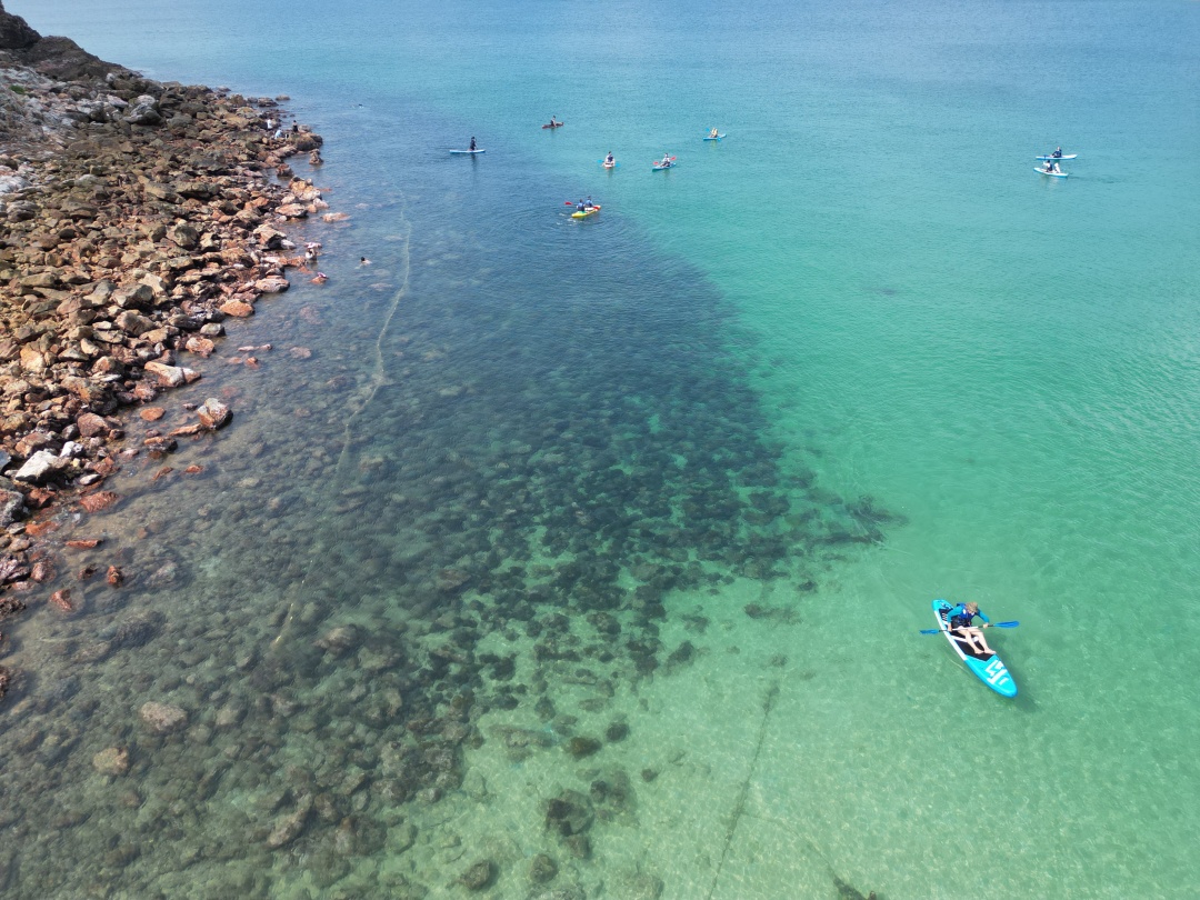 14:30 左右领取浮潜和桨板工具,先听领队讲解水上活动的体验操作要领、注意事项,然后分批开始体验(特别提醒:活动过程中全程须穿好救生衣);