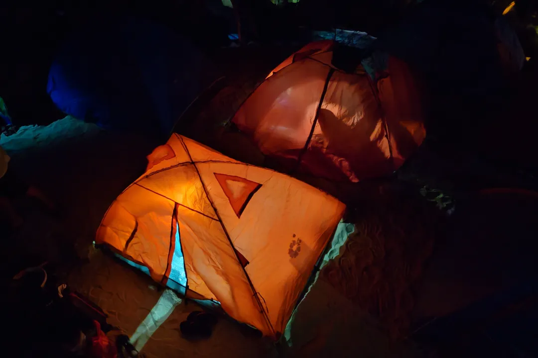 在帐篷里听着远处的海浪声进入梦乡