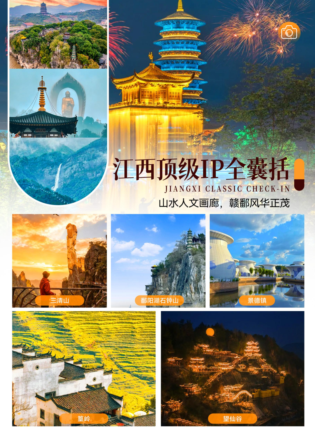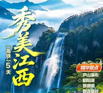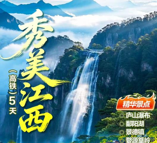 庐山瀑布+鄱阳湖+景德镇+婺源篁岭+三清山+望仙谷+滕王阁