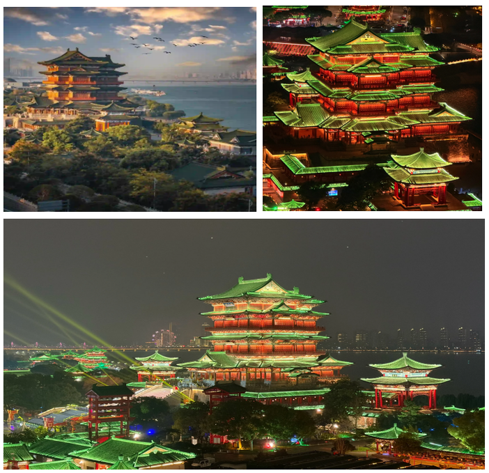 夜间citywalk打卡路线推荐:甘棠湖公园—庾亮历史文化街区——浔阳楼——锁江塔——琵琶亭;