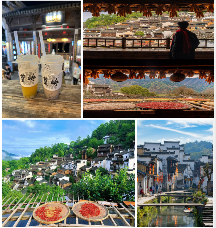 篁岭的古村风貌和春季活动也同样精彩。徽派古村贯穿整个村落的天街,两旁徽式商铺林立,官邸民居相邻,仿佛一幅流动的"清明上河图"。